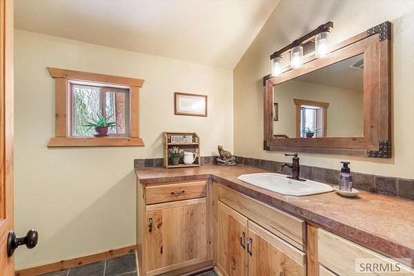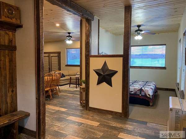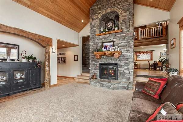 Set beneath wide-open skies with the Tetons rising in the distance, this custom-built home captures the true spirit of the West. Tucked among mature trees and bordered by the gentle flow of Badger Creek, the property offers a rare sense of peace, privacy, and connection to the land. Crafted with character and intention, the home features warm, natural finishes and inviting living spaces designed for gathering after a long day outdoors. Large windows frame the ever-changing landscape--mountain peaks, flowing water, and open pasture--bringing the outdoors in year-round. Built with the horse lifestyle in mind, the land is fully set up for equestrian use with a barn,hay shed, and plenty of space to roam. A separate guest house provides a comfortable stay for friends, family.