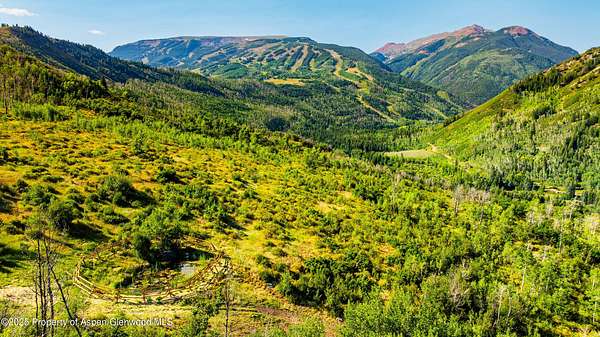11 minutes from Snowmass Village on the Divide Summer Road near The Divide neighborhood OR Headed West on Highway 82, turn left onto Watson Divide, then left onto Snowmass Creek Road. Property is about 7.8 miles up the road. towards Snowmass Mountain, entrance is on the left. The Property begins after the Equestrian Ranch and is on both sides of Snowmass Creek Road.