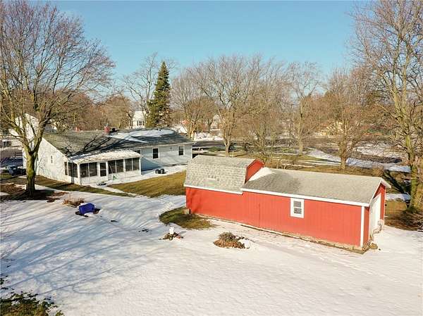 Charming 3 bed, 1.1 bath home in the town of Stafford NY. This inviting property features a three season enclosed porch perfect for relaxing and enjoying the surrounding views. A barn on the property offers added versality. Half of the barn space is equipped with a heater, ideal for a workshop, storage or hobby area. Enjoy outdoor living with a brick fire pit designed for barbecue and gatherings. While a tranquil creek at the end of the property adds natural beauty. A wonderful opportunity to enjoy comfort, peace and country charm all in one setting. A/C, Refrigerator, Dryer and Washer (2023). Delayed negotiations until Tuesday 1/20/26 @12pm