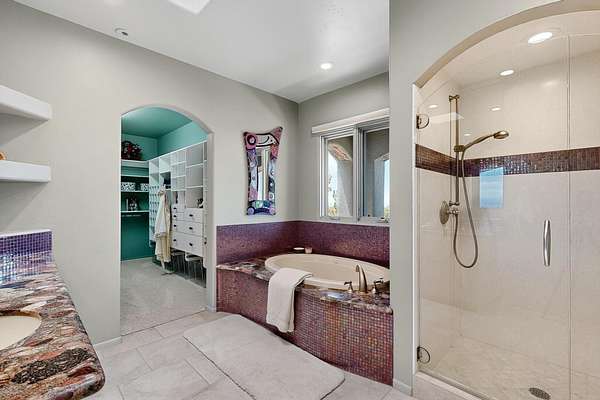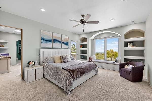 - Bookcases, Ceiling Fans, Central Vacuum, Cove Ceiling, Entrance Foyer, Great Room, High Speed Internet, Intercom, Kitchen Island, Loft, Main Level Primary, Multiple Living Areas, Pantry, Separate Formal Dining Room, Separate Shower, Skylights, Utility Room