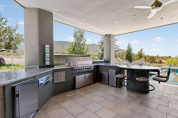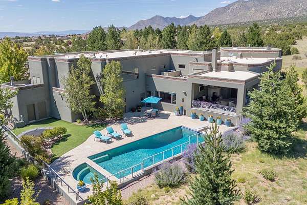 Perched at the pinnacle of High Desert, this extraordinary Custom Built luxury home sits on a private 2.37 acres lot and offers National Forest Views, unmatched privacy, and masterful design throughout. With 4 dedicated bedrooms, including a self-contained guest suite, plus two flexible rooms perfect for a home office and craft space, this home blends spacious living with thoughtful functionality. As you approach the home, you're greeted by an elegant water feature that flows beside a custom fire pit, creating a stunning and serene entry experience that sets the tone for the rest of the property. Bedrooms/Office all have window and balcony views. creating indoor-outdoor living and maximizing the incredible vistas. Designed for both elegance and practicality... PLEASE CLICK ''MORE'