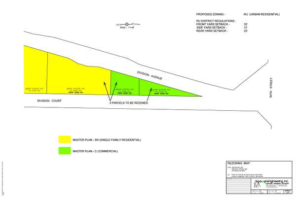 1.73 Acre Commercial Land The north two parcels of this property are Masterplanned Commercial. Township Planner and Zoning Administrator have indicated they would support rezoning to commercial for the right commercial user for the property for a maximum building size of approximately 9500sf, or RS - Suburban- Residential to allow for up to 2 separate duplex lots and one single family lot. The sewer is immediately north of the property. High-Pressure water runs in Division. In addition, the County has indicated they will grant a curb cut onto Division Avenue as shown in the attached site plans, including them paying to T off Division Ct with Division on the north end by a easement to them. Additionally, this property is down the road from Tanger, brings 4 million people annually