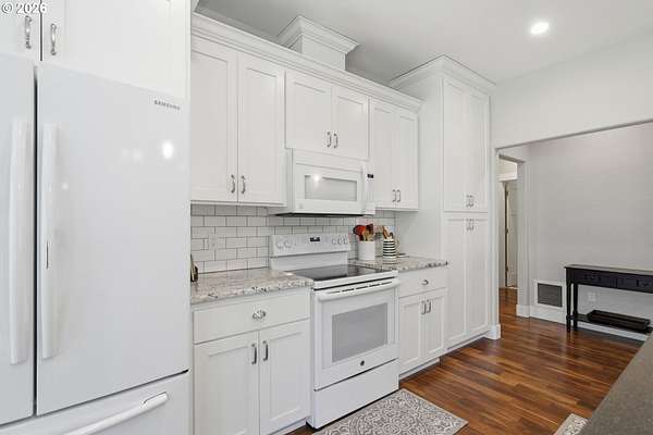 - Builtin Range, Builtin Refrigerator, Dishwasher, Disposal, Granite, Microwave, Pantry, Plumbed For Ice Maker, Solid Surface Countertop