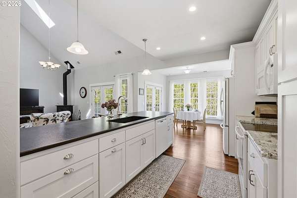 - Garage Door Opener, Hardwood Floors, High Ceilings, Laundry, Skylight, Tile Floor, Vaulted Ceiling, Wainscoting, Wallto Wall Carpet, Washer Dryer, Water Softener, Wood Floors