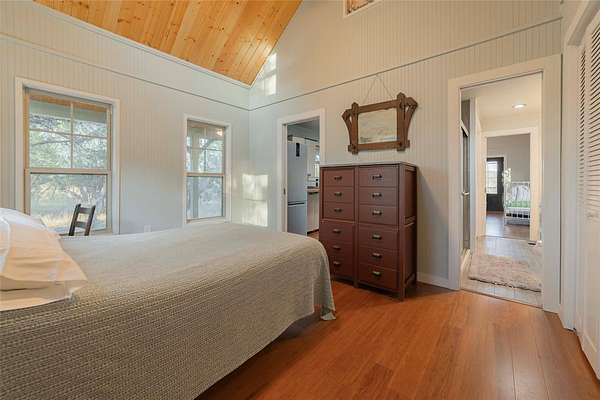 Discover an exceptional 25-acre Hill Country retreat perched on a scenic bluff above the confluence of the Pedernales River and Cypress Creek, offering privacy, dramatic views, and live water within Travis County and award-winning Dripping Springs ISD. The property combines Hill Country living with everyday convenience near Reimer's Ranch, Hamilton Pool Preserve, Westcave Preserve, Lake Travis recreation, and shopping and dining at the Hill Country Galleria. There is gated paved access from Hammett's Crossing Road with easy drives to Dripping Springs, Bee Cave, Marble Falls, and Austin. The land features approx. 1,230 ft of Pedernales River frontage and 1,100 ft along Cypress Creek for river views and experiences. The topography offers versatile build sites near the road and striking bluff views near the river. A mix of native trees and seasonal wildflowers creates a beautiful natural setting. The wildlife valuation keeps annual taxes low. A well-built 640 sq. ft. cottage (1 bedroom + loft), constructed in 2021, offers an immediate place to enjoy the property while planning long-term improvements. It includes a private well, electricity, Starlink high-speed internet, septic engineered for a future larger home, a screened porch overlooking the bluff, and a 500 sq. ft. covered front porch. Minimal restrictions preserve the property's character. Survey and building plans are available. Schedule a private tour today to fully appreciate the views, river access, and development potential of this rare, riverfront offering.