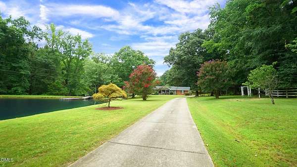 Ranch home located in the heart of Bahama on just under 9 acres, two stocked ponds, and a koi pond. Two grape vines, scuppernong & muscadine. Huge wired RV storage barn/workshop, 1 horse stall. New roof in 2024, new HVAC ( gas pac ) in 2025, new gutters and gutter guards, new water softener in2024, kitchen countertops and tile floor in 2024. Septic pumped in2024. 2 car rear load garage. Lots of gleaming hardwood floors, formal living room & dining room, large den with fireplace/gas logs. 3 Br 2 Ba, owners suite with updated full bath and cedar closet, Heated & cooled office in garage. All appliances convey (ex. freezer in garage ) including washer & dryer. House is situated on 5.29 acres with a additional 3.56 acres that adjoin the left, list price includes total acerage of 8.85. Enjoy great privacy and quiet as the house is off the road a good distance.