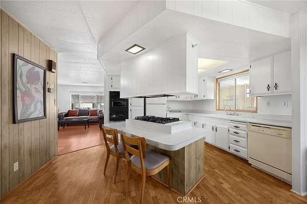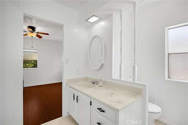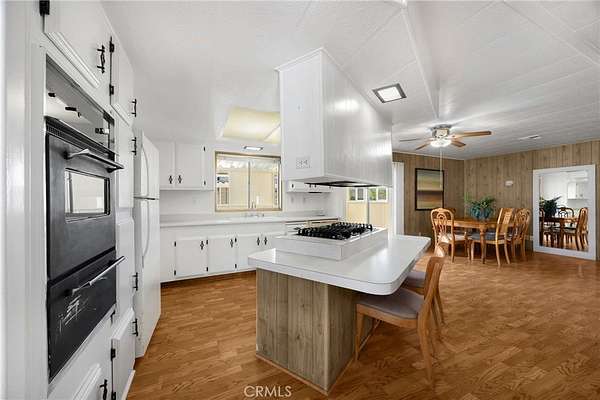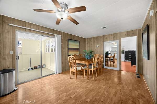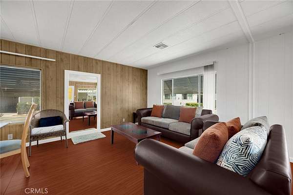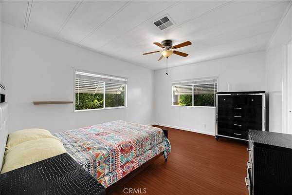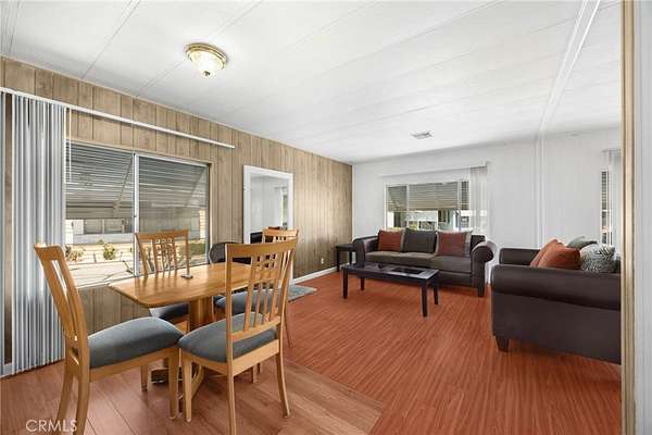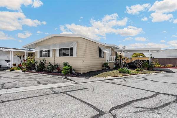 Villa Nova Mobile Home Park Senior 55plus. Come see this Lovely 2b 2b 1440 sqft home . Move in ready. This is a corner home facing the club house with ample parking for guest. The home does have 2 parking spots on the side of the home. Step up into a small landing front porch, you can add plants or some chairs for those summer evening. Walk into the living room with laminate flooring, and a dinning area with a built in Hutch. The kitchen is open with plenty of cabinets and another dinning area or could be a lounge area to relax and watch your favorite TV show. A sliding door out to the enclosed patio for those wanting some privacy for reading or a nice gathering of friends for entertaining. Adjacent to the kitchen is the Laundry room with washer and dryer, then the back door out to the side yard and parking. There is a Handicap ramp if needed, is Permitted. Guest bedroom 1, a good size with walk-in closet and its own bathroom with shower. 2nd master bedroom, a very good size, has a walk-in closet, and its own large bathroom and walk in shower. This home has new inside and outside recent painting. lots of beautiful plants and lemon tree. A good size storage for your garden tools. Home has central heat and cooling. Ceiling fans in both bedrooms, and lounge area. Carbon monoxide and smoke detectors in place. Entertainment at the club house and good size pool. Conveniently located to Shopping, and church, hospital and freeways. A must see.