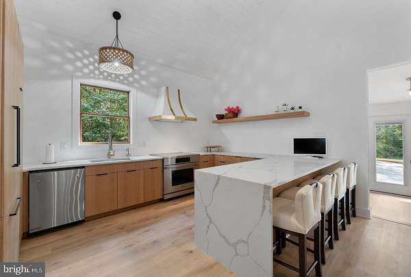 This contemporary masterpiece, custom-built with meticulous attention to detail, underwent a stunning renovation in 2022. Nestled on a tranquil 14-acre estate, this home offers the perfect blend of modern luxury and natural seclusion. 4 bedrooms, 3 full bathrooms has something for everyone. Bring your bags, this destination home is waiting for you. Rent includes all utilities, furniture, landscaping, soft goods and an entertainment room with pool table and arcade games. The thoughtfully designed open floor plan offers the convenience of single-level living, yet it also boasts a loft and a walk-out basement, providing versatility for your lifestyle needs. The heart of this home is the custom kitchen, showcasing elegant waterfall quartz countertops, a built-in refrigerator, and a captivating gold hood vent. Step outside onto the inviting covered porch, where you can immerse yourself in the splendor of the surrounding nature. For your entertainment and relaxation, a spacious detached two-room retreat beckons with its own dedicated heating system, creating the ideal space for gatherings and quality time with friends.