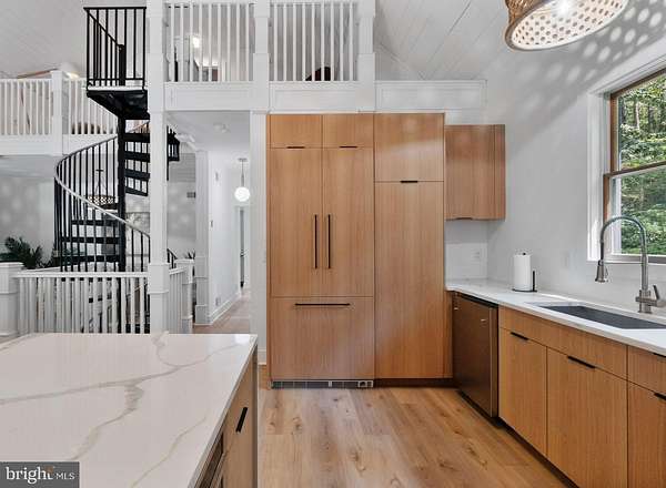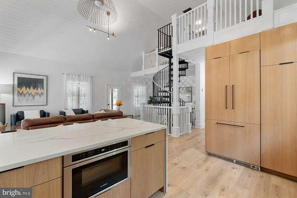 - Built-Ins, Ceiling Fan(s), Country Kitchen, Entry Level Bedroom, Open Floor Plan, Primary Bath(s), Recessed Lighting, Spiral Staircase, Stain/Lead Glass, Stall Shower Bathroom, Table Space Kitchen, Upgraded Countertops, Walk-In Closet(s), Water Treat System, Wood Floors