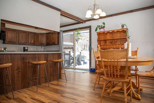 This 3 bedroom, 2 bath house offers over 5 acres of mostly wooded privacy with a beautifully cleared yard for the best of both worlds. This layout flows nicely with many different spaces to enjoy. Cozy up by the wood stove in the spacious den, or entertain in the open kitchen with convenient sliding glass doors to one of 3 decks! The perfect spot for outdoor grilling. Traditional living room and bonus room make this hard to beat. Primary Bedroom with full ensuite bath and private deck becomes your sanctuary from the world. 2 additional bedrooms and second full bath means plenty of space for everyone or room for a home office or 2. Auto start Generac Generator for peace of mind. 1 Car Garage keeps your vehicle safe from the elements and additional shed is perfect for extra storage. Current owners remodeled both bathrooms including plumbing, renovated French drain, serviced the furnace, updated gutters and added extensions and made electrical updates, among other things to make this home ready for you. Kitchen counter stools & snow blower convey with sale of house. Experience country living at it's finest! Close to Whiteface Ski Mountain & Resort, Lake Placid, the High Peaks Region and all that the Adirondacks have to offer! 30 min commute to Plattsburgh.