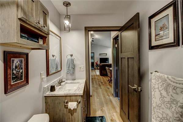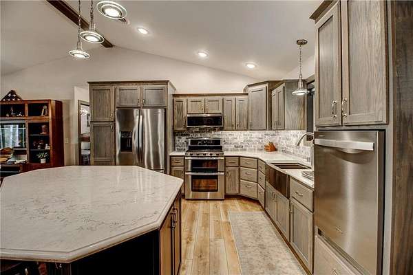 Welcome to this beautiful 3-bedroom, 2-bath home on the edge of Menahga! Designed for easy one-level living with no steps throughout, this property combines comfort, style, and functionality. Inside, you'll love the open layout featuring Cambria countertops, custom Amish cabinetry, and a spacious kitchen perfect for both everyday living and entertaining. The primary suite features a large walk-in closet and ensuite with a custom tile shower, while the cozy gas fireplace creates a warm and inviting living space. Outside, a 24x48 detached garage with workshop space provides plenty of room for vehicles, projects, and storage. The home is topped with a durable steel roof for peace of mind and low maintenance. It is also just minutes away from local lakes. Set in a quiet location just minutes from downtown, this property offers the perfect blend of modern convenience and country living.