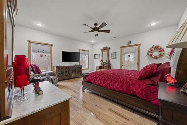 - Attic Access Only, Bookshelves, Ceiling Fan(s), Chandeliers, Closet Light(s), Split Bedroom Floor Plan, Walk-In Closet(s)