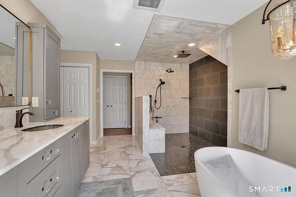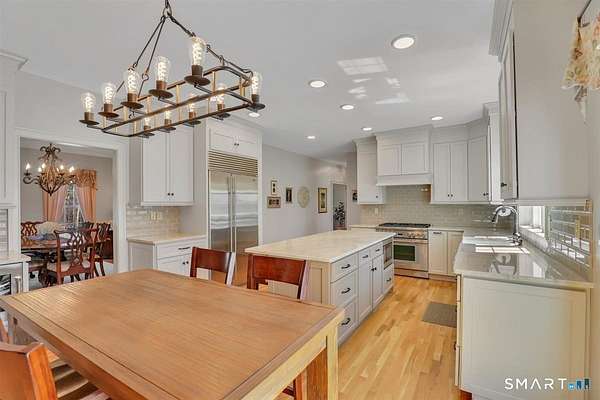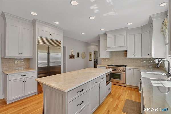 Welcome to this beautifully updated home which offers modern comfort, high-end finishes & peace of mind with several upgrades already completed! Located in Middlebury's South Street neighborhood this Colonial is 3300 sq ft on a 1.85 acre lot. Step in to a bright & inviting foyer feat. a high ceiling, a custom wood & glass front door & a stunning custom handrail leading the expansive 4 bedrooms. On the main level you will find a formal living room with coffered ceilings, French doors & a large dining room with plenty of room for gathering to enjoy a meal.The spacious great room offers a gas fire place, gleaming HW floors & French doors leading out to an oversized deck as well as a custom stone patio w/a built-in fire pit surrounded by a stone wall & beautiful gardens. The chef's kitchen is the heart of the home where everyone gathers around d the kitchen island. Seating around the breakfast bar with quartzite counters is the perfect spot to enjoy a cup of coffee in the morning. Included in the dream kitchen is a 6 Burner Thermador, range/oven, a SS Subzero side by side refrigerator, a SS microwave tucked neatly in the island, a SS dishwasher & a large farm sink. An oversized powder room & nice sized office finish off the first floor. Upstairs the Primary Suite features a tray ceiling, walk-in California Closet w/plenty of storage & new tile flooring. The on Suite to the Primary has heated Calcutta Gold Marble flooring, custom vanity, walk-in, extra large shower & soaking tub.
