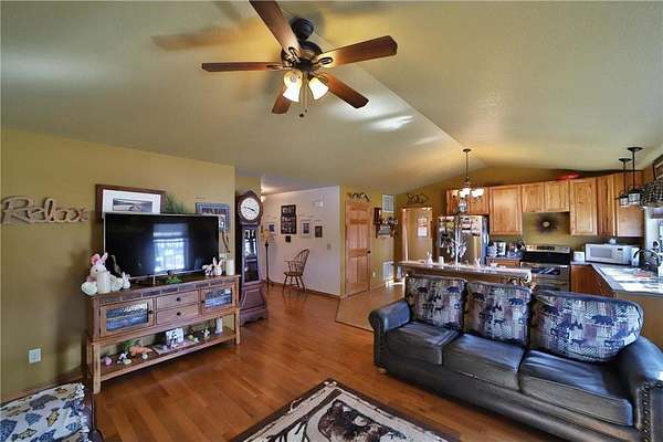 The home features comfortable main-level living, along with a partial basement that provides additional space and a secure retreat during storms. The kitchen is well-appointed with a double oven, ideal for hosting and entertaining.