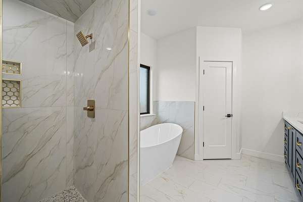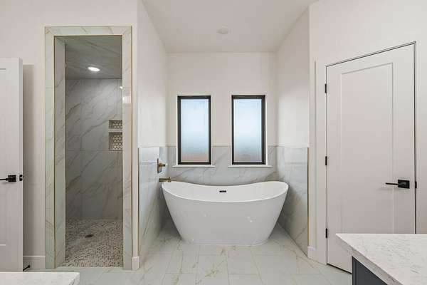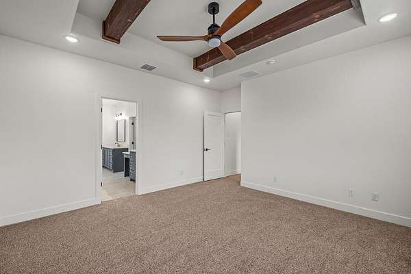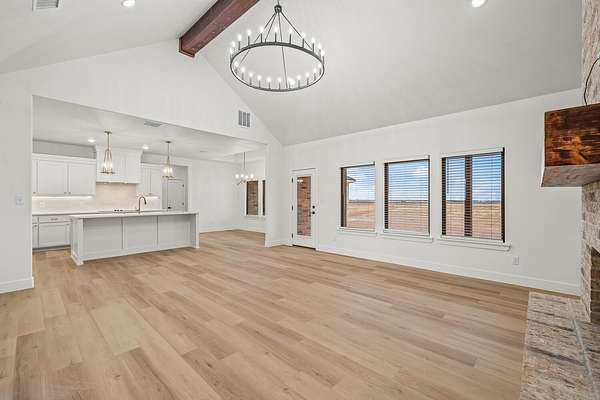 - Beamed Ceilings, Built-In Features, Ceiling Fan(s), Chandelier, Double Vanity, Entrance Foyer, High Speed Internet, Kitchen Island, Natural Woodwork, Open Floorplan, Pantry, Quartz Counters, Soaking Tub, Walk-In Closet(s)
