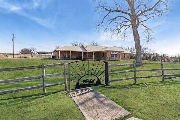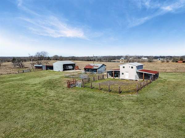 Don't miss this opportunity to purchase this amazing property with so much potential. This home sits on over 9 acres of cleared rolling topography. This home has the opportunity to be an amazing compound for a family who just wants to get away from it all. This property features a large approximately 2 acre lake that is fully stocked and has two fishing piers to enjoy anytime of the year. The property features two seperate entrances, a shop, a lean to for live stock or horses and another large shop all with electricity and water access and or connected. This property sits in the ETJ which means no city taxes and no HOA. This home needs some updates inside but is build on a firm slab foundation, with views that are unmatched.