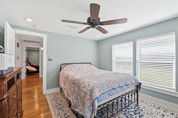 - Blinds/Shades, Cable TV, Ceiling Fan(s), Convection Oven, Free Standing Range, Inside Utility Room, Pantry, Quartz, Self-Clean Oven, Smoke Alarm, Tile Floors, Wood Floors