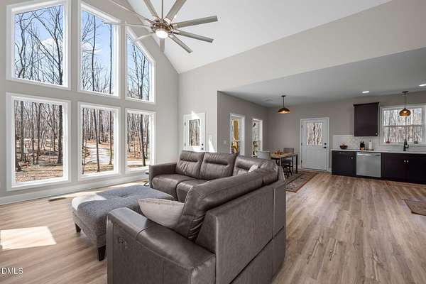 - Bathtub/Shower Combination, Ceiling Fan(s), Eat-In Kitchen, High Ceilings, Kitchen/Dining Room Combination, Open Floorplan, Pantry, Primary Downstairs, Recessed Lighting, Separate Shower, Vaulted Ceiling(s), Walk-In Shower