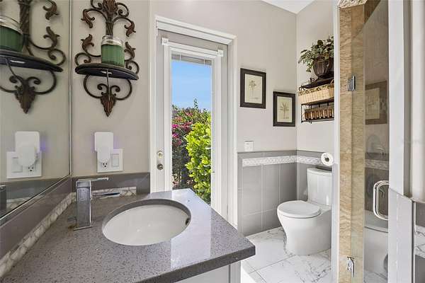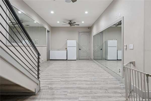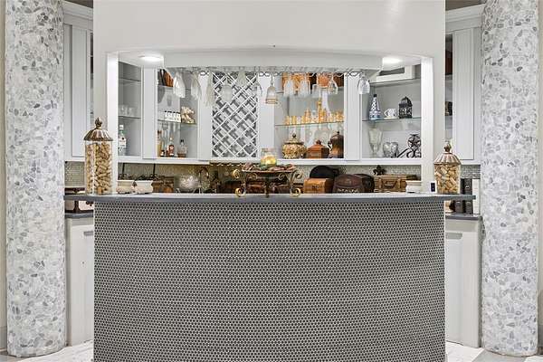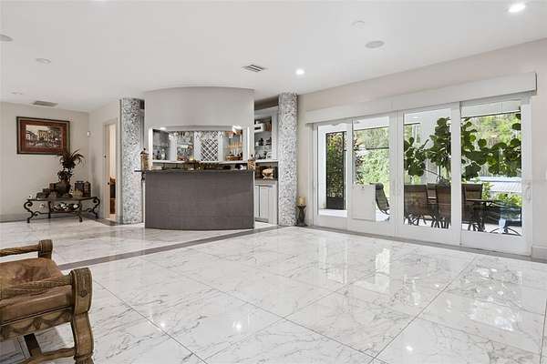 The spacious living/dining area has lots of natural light and offers ample space for entertainment and includes a full bar with refrigerator and a guest half bath.