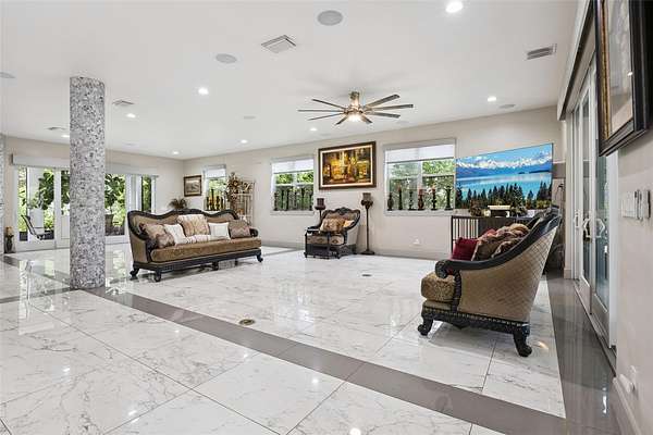 Your own private oasis! Experience ultimate privacy in this one-of-a-kind gated Estate surrounded by lush landscaping and premium horse fencing. This custom-built home offers steel frame and poured concrete construction, bulletproof glass front windows, and a metal roof for exceptional durability and peace of mind.