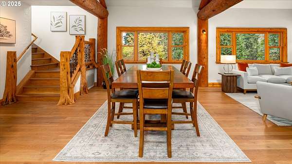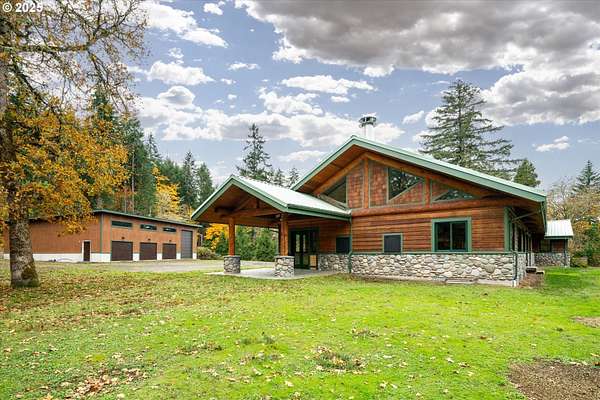 Nestled on 20 acres sits this remarkable home, overflowing with stunning craftsmanship and presenting itself as a one of a kind private retreat just minutes to town. Built-in 2010, the expansive great room features beautiful hardwood floors, vaulted open beam ceilings, built-in wet bar and a majestic, river stone fireplace. An abundance of windows and skylights provide ample light and picturesque views of nature and the surrounding trees. The chef's kitchen boasts beautiful granite counters, Hickory cabinets, large island with sink, eating bar and gas cooking. The spacious primary suite features a separate sitting area, walk-in closet with built-ins and a large soaking tub. Multiple covered patios offer the perfect place to relax and enjoy the peace and quiet, or host and entertain your guests. In addition you'll find a huge 2400 sq ft garage/shop with a separate 600 amp electrical service and an RV door that allows for up to 8 cars! Perched near the top of Forest Hill with open sunny meadows, old growth forests and expansive skies, this lovely setting offers endless possibilities to create your dreams. All located less than 10 minutes to Eugene with absolute privacy from neighbors, this amazing property is truly a rare find! Contact your agent today to schedule an appt to view.