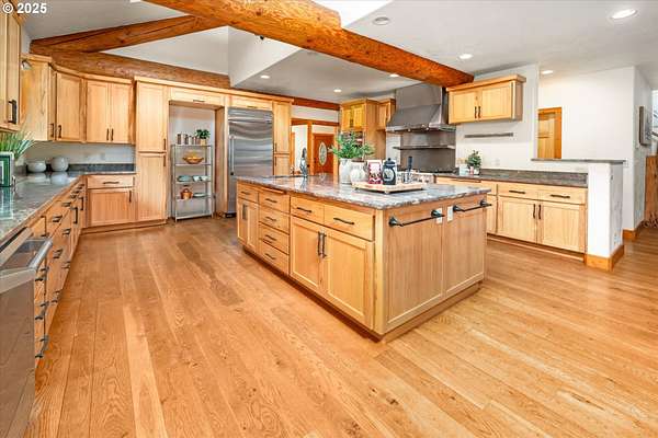 - Builtin Oven, Builtin Refrigerator, Cooktop, Dishwasher, Disposal, Double Oven, Free Standing Range, Gas Appliances, Granite, Island, Range Hood, Stainless Steel Appliance