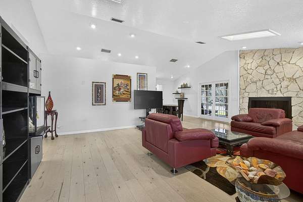 Welcome to your own equestrian retreat -- an established, beautifully appointed 3-acre farm. Train & ride at home in the dressage ring w/ mirror wall and charming viewing gazebo, then turn your horses out to 8 lush grass paddocks. Delight in the thoughtfully designed 12-stall barn, featuring a dedicated stallion stall, automatic waterers, two wash racks, a tack room with 1/2 bath, feed room, washer & dryer. A charming 3-bedroom, 2-bath main residence awaits, where a dramatic floor-to-ceiling coral fireplace creates a warm, inviting focal point. Relax on the expansive screened porch overlooking the newly refinished pool, perfect for unwinding after a day in the saddle or entertaining friends under the stars. A breezeway connects the barn to a spacious 1 bedroom apartment. Offered Turnkey.