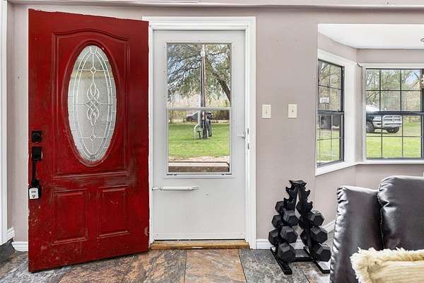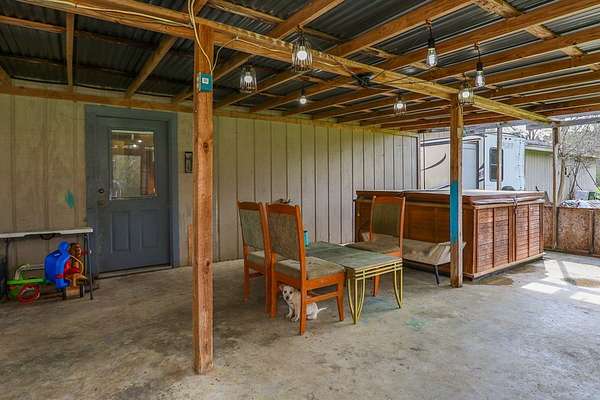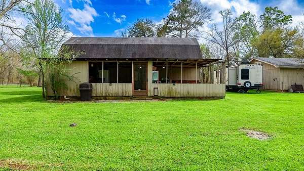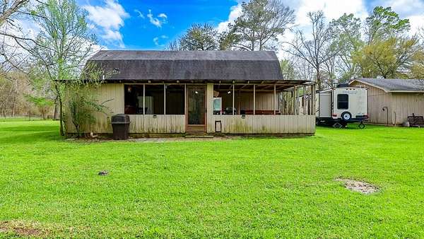 Enjoy relaxed country living on this 6.5 acre property near Woodville. This unique home is surrounded by mature trees and peaceful East Texas scenery perfect for all outdoor hobbies. Inside, the home features a comfortable layout with rustic wood accents, durable flooring, and plenty of natural light throughout. The kitchen offers generous cabinet and counter space with room for everyday dining. One of the standout features is the large covered outdoor entertainment area complete with a custom bar setup, seating area, and space for gatherings. The covered patio also includes a hot tub area, making it a great spot to relax and enjoy the quiet country setting. The property provides plenty of open yard space for outdoor activities, gardening, or pets, with room to expand or add additional improvements. Whether you're looking for a weekend retreat, full-time residence, or a place to entertain friends and family, this property offers privacy and country living with a short drive to town.
