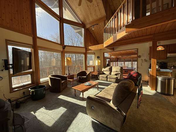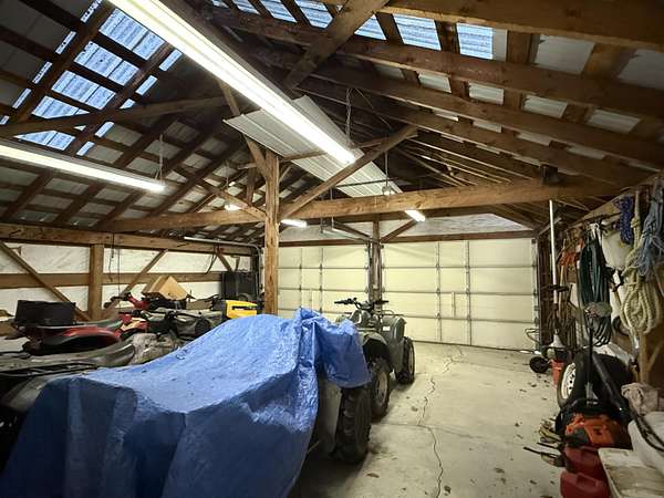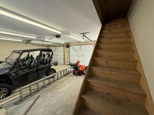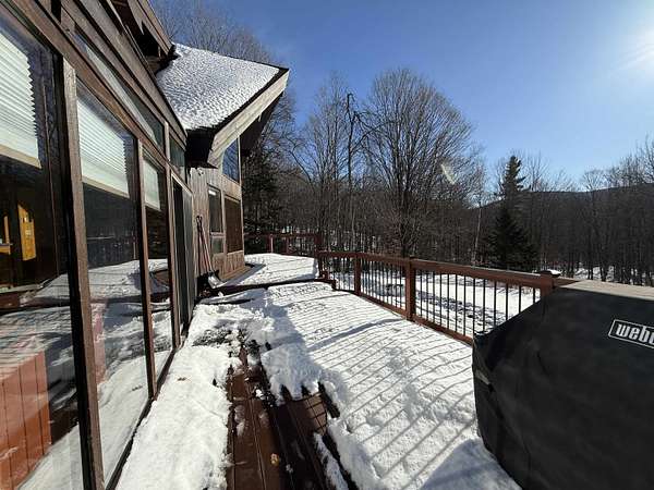 This is a special piece of Vermont centered between Jackson Gore at Okemo and Lake Nineveh boat landing...less than 4.4 miles to each! You will discover a well-cared for home in a very private, yet accessible location. Winter views in two directions could be year-round views with a bit of clearing. In summer, enjoy the outdoors from your large deck across the front, and in winter, take in the views through the wall of windows while you are enjoying the comfort of the Vermont Castings wood stove. The natural light and the cathedral ceiling in the living room are delightful. There is a large step-down room with hot tub and more windows to take in the views. On the walk out lower level, there is a small sitting room with woodstove, bedroom, 3/4 bath, bonus room and a utility room. The kitchen, living room, dining room, bedroom and full bath on the main level. Upstairs is a bedroom, bonus room and a loft. There is a huge double garage with four garage doors and room for 4-6 cars, ATVs, snowmobiles, tools, workshop or whatever else you can think of! Working out there year-round is doable with the propane heat. There is a stairway to second floor storage. This location will be loved by those looking for peace and quiet, or the handy location to connect with the VAST snowmobile trails right from the property. Being offered fully furnished so you will be ready to to from day one. Don't miss out!