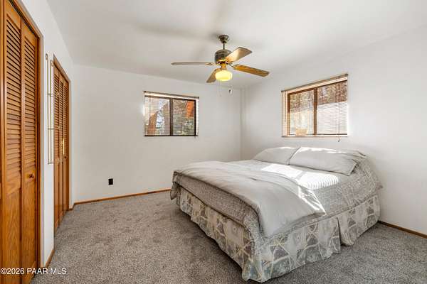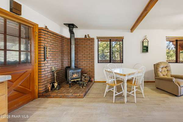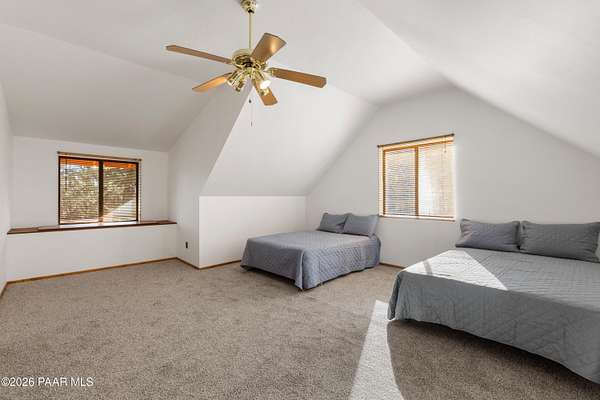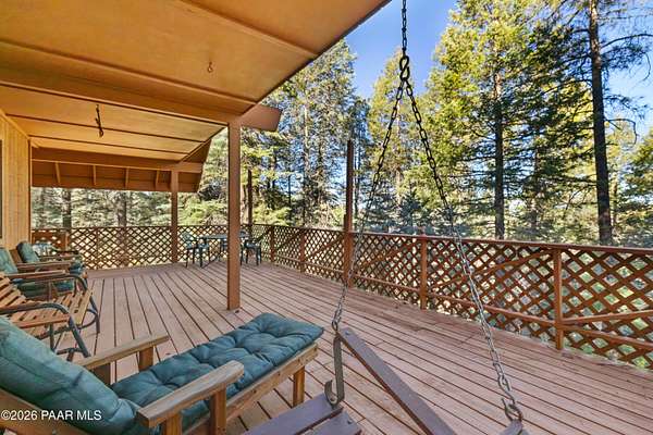 What if your next home came with 1.89 acres of towering Ponderosa Pines, cool mountain breezes, and the kind of peace you can actually hear? Tucked among towering Ponderosa Pines on 1.89 acres, this charming mountain cabin offers the peaceful escape buyers dream about but rarely find. Located at the end of a quiet road, the property delivers privacy, cool mountain air, and the soothing sound of wind through the trees.Enjoy mornings on the large covered deck overlooking miles of forest views. Inside, the cabin features a warm open great room where the living, dining, and kitchen areas flow together--perfect for relaxing or entertaining. A cozy wood-burning stove adds mountain charm, while fresh new carpet and tile throughout give the home an updated feel.The main level includes the primary bedroom and full bathroom for convenient living. Upstairs offers two spacious rooms, including an oversized bedroom and flexible loft ideal for a family room, media space, or guest area.The entire lower level is a 682 sq ft garage, providing excellent storage for vehicles and outdoor gear.Surrounded by nature and abundant wildlife, this property feels like a true mountain sanctuary just waiting to be discovered. AWD/4WD recommended.