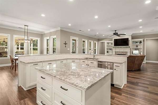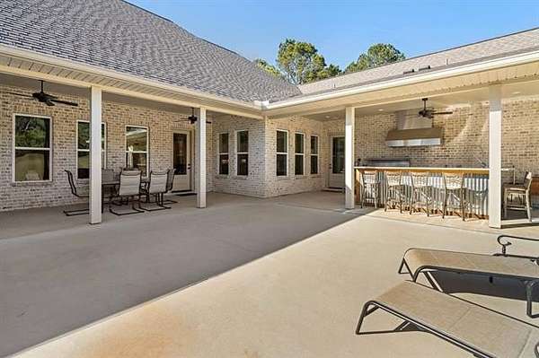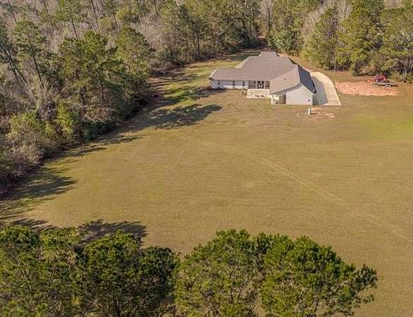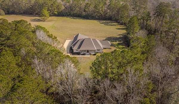 A MUST SEE! From the moment you wind down the peaceful country driveway, you'll feel right at home at this stunning custom residence nestled on 9 beautiful acres. Built just 3 years ago, this thoughtfully designed 3 bedroom, 3.5 bath home offers a spacious open floor plan ideal for both everyday living and entertaining. Interior highlights include plantation shutters, crown molding, luxury vinyl plank flooring, generous closets, and custom built-in cabinetry and shelving throughout. The large kitchen is both stylish and functional, featuring sleek cabinetry, granite countertops, stainless steel appliances, a center island, and abundant storage. The spacious primary suite is a true retreat, complete with an attached craft room, large walk-in shower, soaking tub, dual vanities, and two walk-in closets. A true guest wing provides privacy and comfort, featuring handicap-accessible design and a private en-suite bathroom, making it ideal for guests, multigenerational living, or extended stays. Additional features include two 80-gallon water heaters and a 350-gallon propane tank for added efficiency and peace of mind. Step outside to enjoy the impressive outdoor living area, complete with an industrial-style kitchen setup featuring stove/oven/flat top, grill, vent hood, granite bar countertop, mounted TV, and expansive covered patio -- perfect for relaxing or entertaining while taking in the peaceful surroundings. This property offers the ideal blend of privacy, comfort, and modern design -- truly a rare find.
