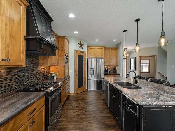 The finished lower level offers even more living space with a 5th bedroom, ¾ bathroom, large family room, amusement area, wet bar, and in-floor heat for year-round comfort.