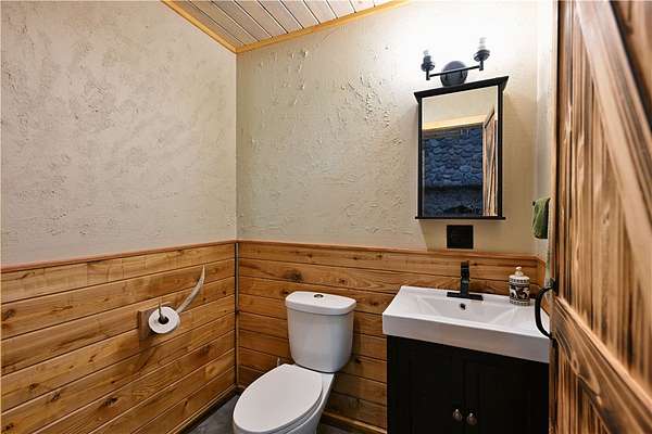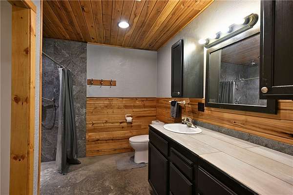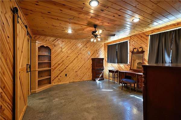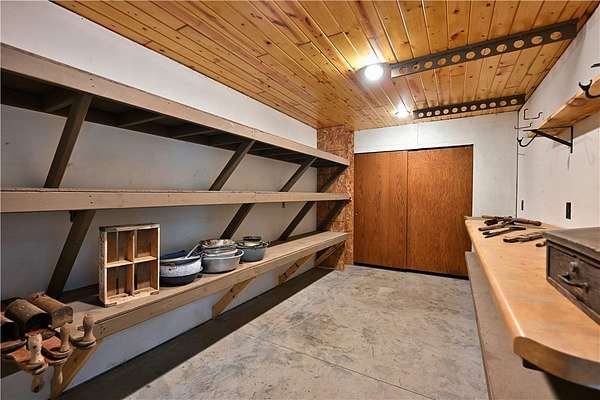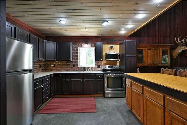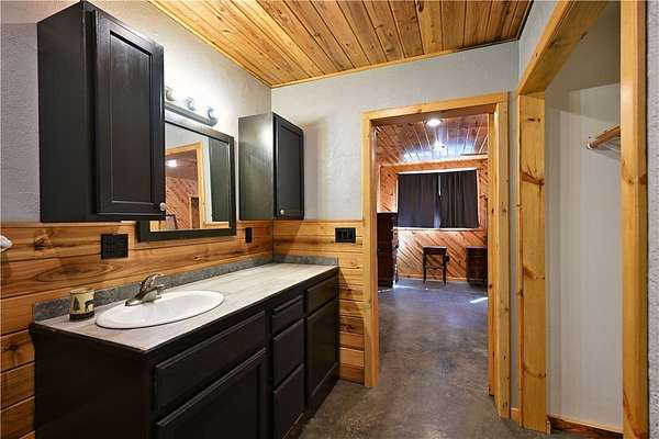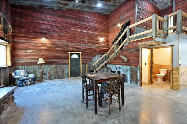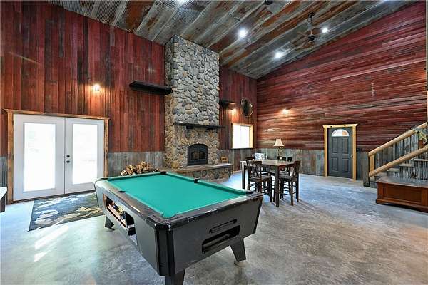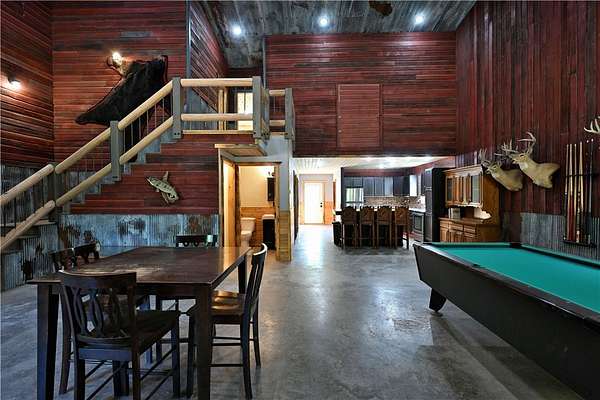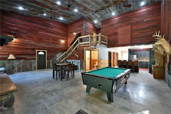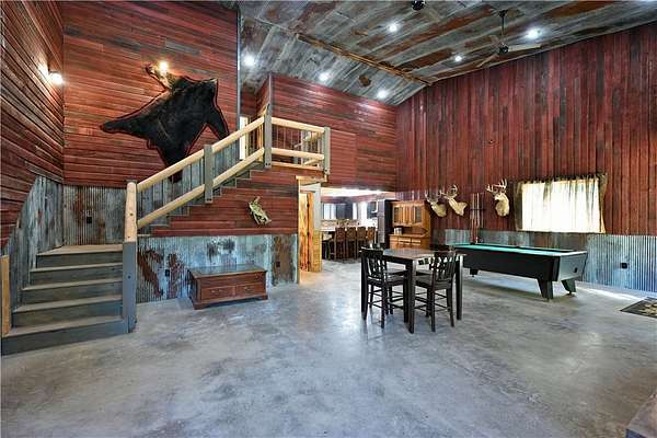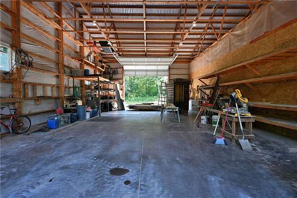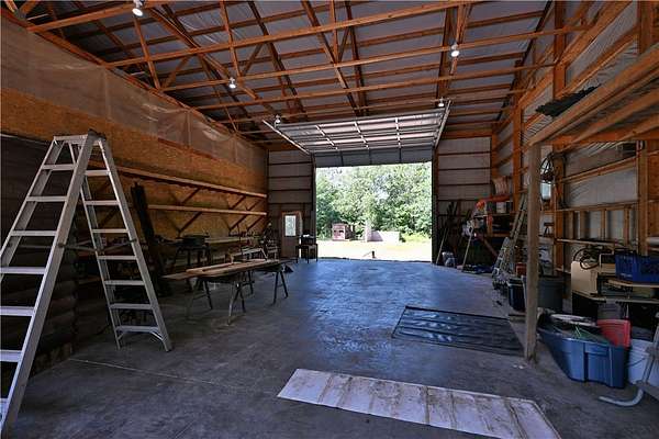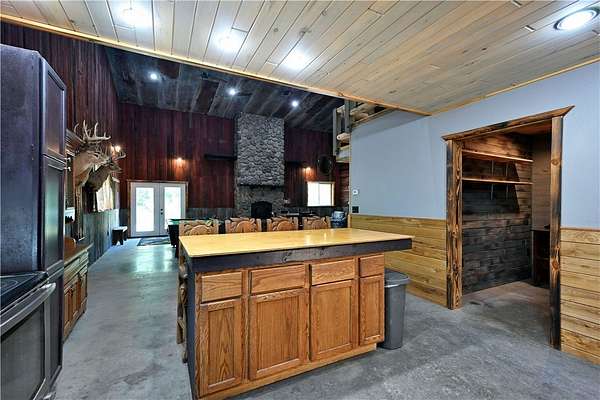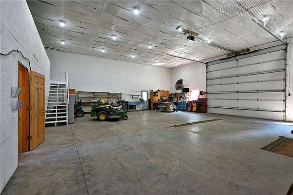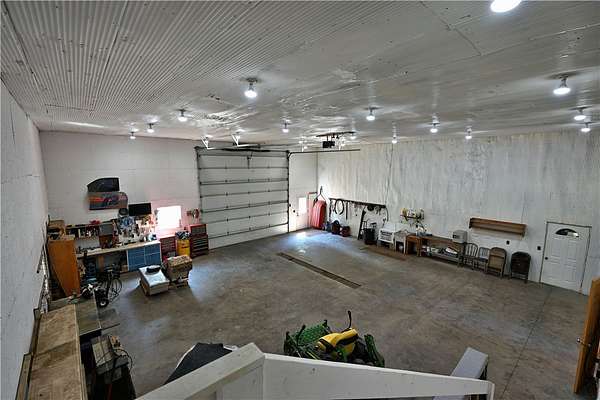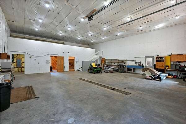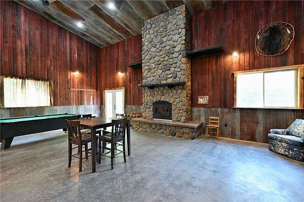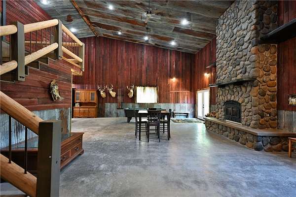 Amazing opportunity! This rustic home has all the Northwoods charm you could want, and situated on 6 acres. The grand stone fireplace takes center stage in the main level and is not only efficient in cooler temps but shows off what the north country is all about. The entire main level has polished floors for the greatest maintenance you could ask for, all open with high ceilings, tongue & groove, tin and in floor heating. The upper level has an additional bath and large comfortable size bedrooms. But the best part!?! The attached heated 40 x 50 garage space!! Fit not only for all the recreational toys, but RV's Semi's, tractors....as well as an incredible shop space, office, upper level storage, and separate utility room. If you need more room there is also a 30 x 50 unheated garage space. This screams work and home louder than most. If you need a place for the equipment, own your own business, or looking to start one, this is the creme de la creme. Come check it out!