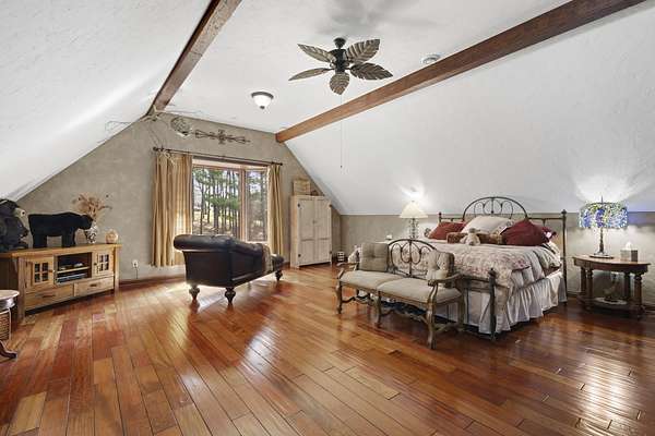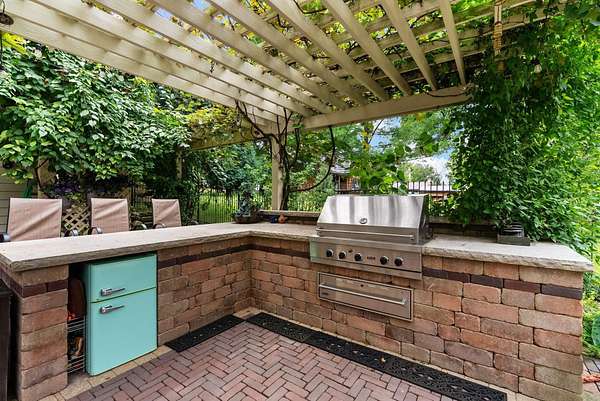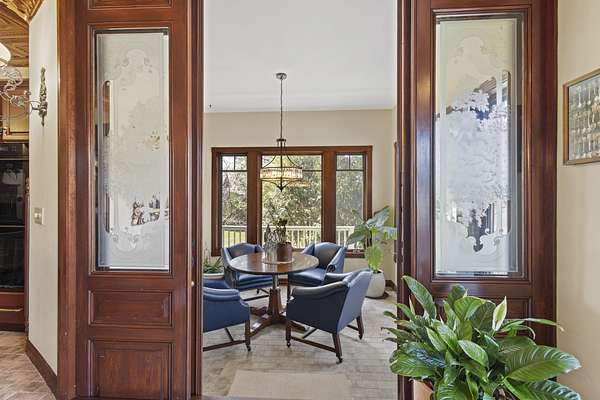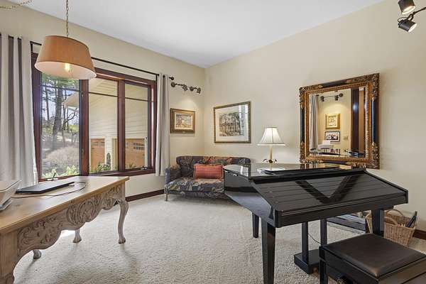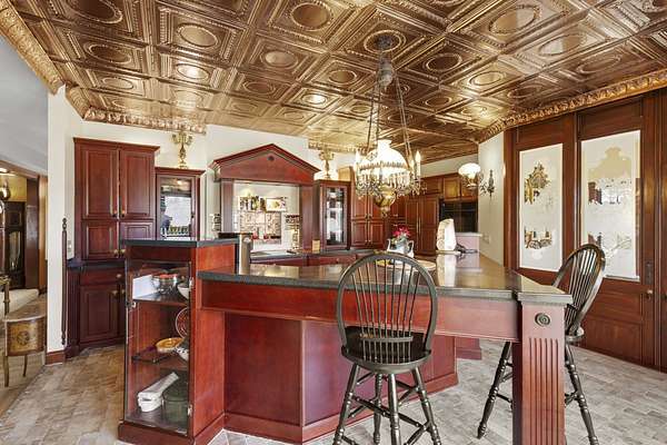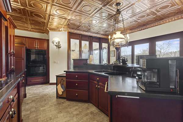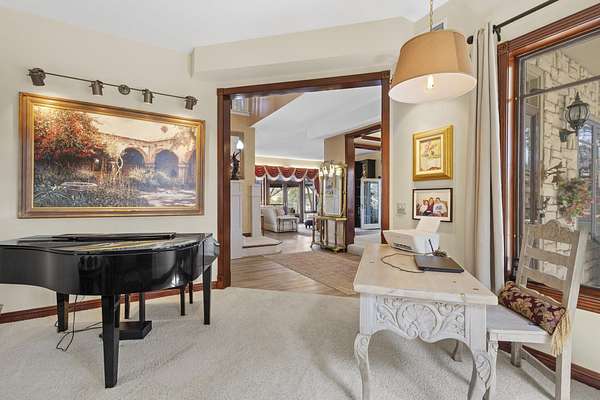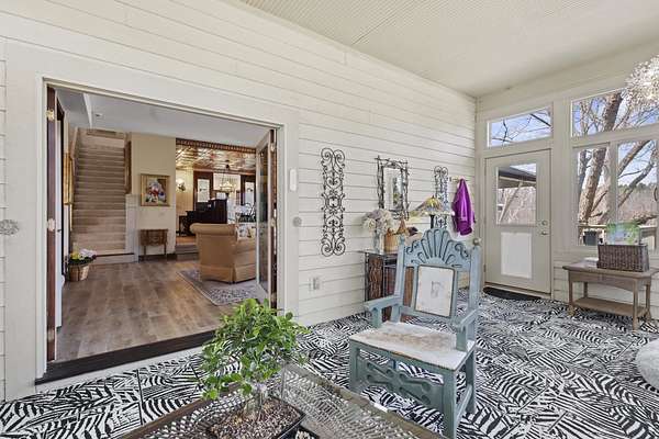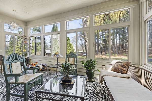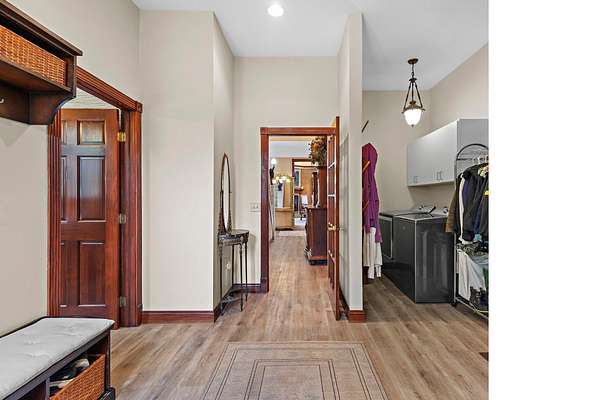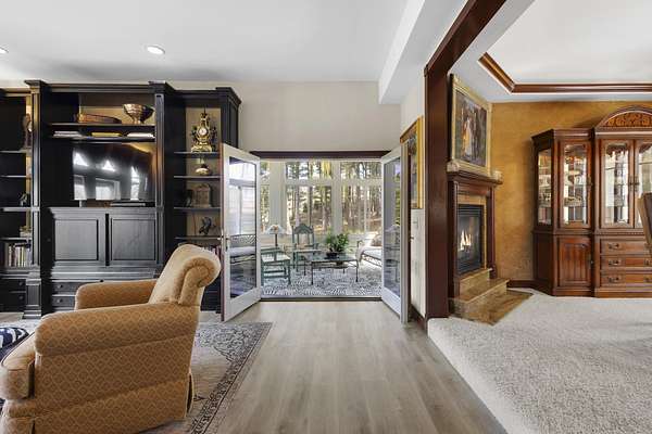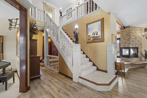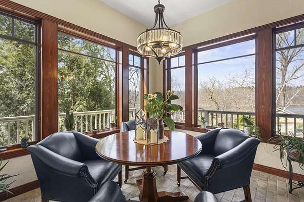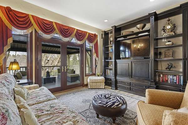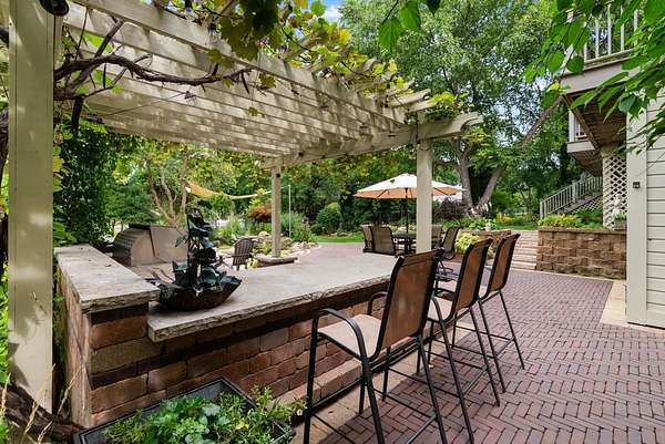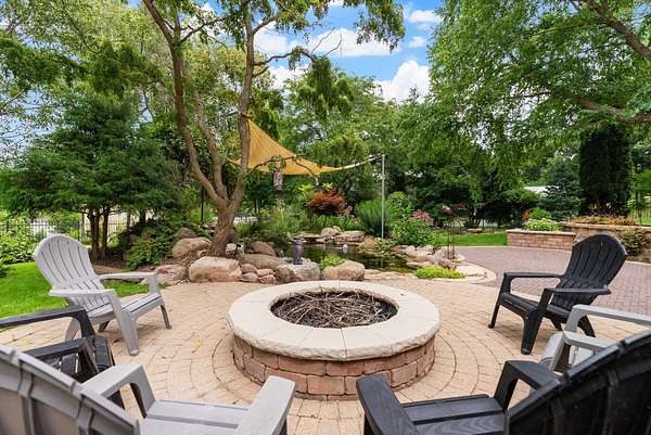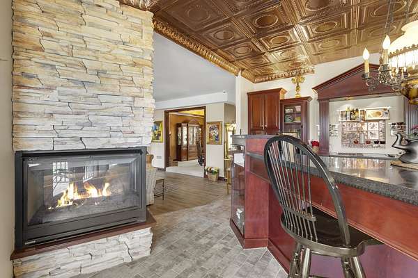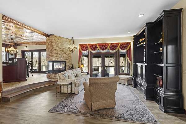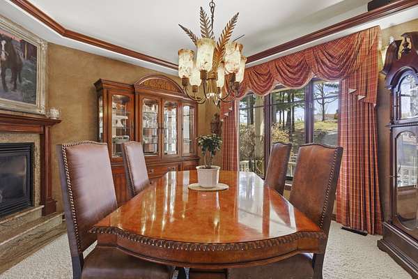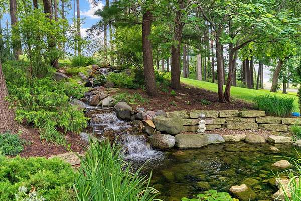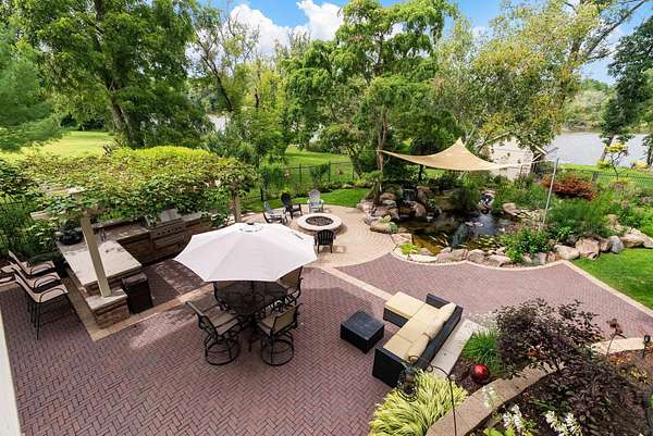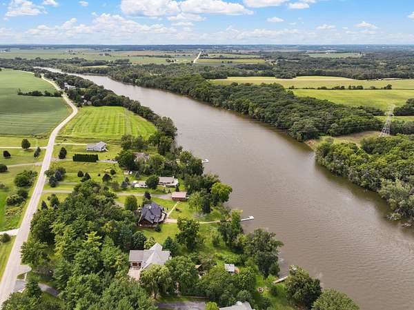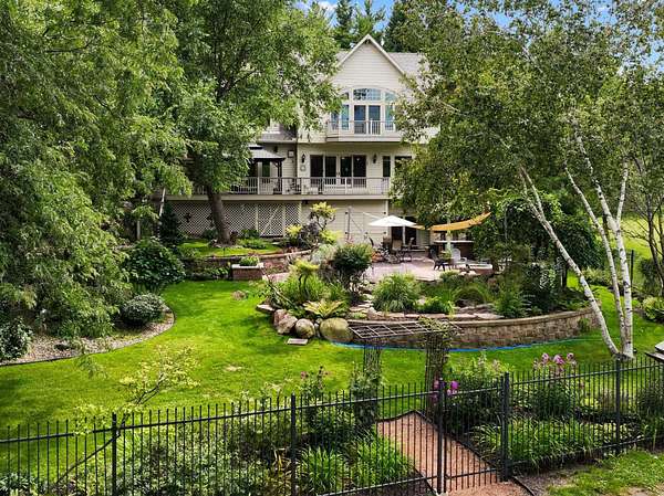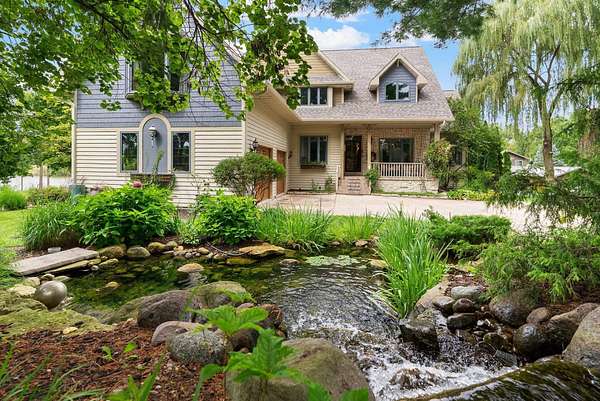 This elegant riverfront home blends timeless European details with modern luxury, on over 1.5 acres of beautifully landscaped grounds. Main-level living room, kitchen, and sunroom open to a spacious deck overlooking a brick patio and Rock River. The gourmet kitchen features cherry wood cabinets, copper ceiling, JennAir double ovens, and a sunken informal dining area. Formal dining, study, and laundry room complete main level. Upstairs, the primary suite offers a private balcony with river views, spa bath with steam shower, fireplace, and abundant custom closet space. A hidden playroom adds a touch of whimsy. Three more bedrooms and attic storage provide space for family and guests. The lower level is perfect for entertaining, with a UK-imported pub bar, recreation area, exercise room with sauna, and flex room for office/extra bedroom. Step outside to a backyard oasis with koi pond, waterfalls, built-in grill, and private river access with dock, kayak launch, and jet ski storage.