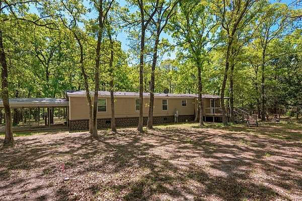 Discover this remarkable 3-bedroom, 2-bath residence nestled on a serene 2.5 +- acre lot in the picturesque town of Quinlan, TX. Perfectly crafted for those seeking tranquility and expansive living spaces, this home offers an idyllic wooded setting that captures the essence of peaceful country living while still allowing for modern comforts. Inside, be greeted by new flooring throughout that seamlessly unites the home with a clean, cohesive look. The open-concept layout creates an inviting atmosphere, anchored by a large living area that exudes warmth with its charming fireplace. The thoughtfully designed floor plan ensures privacy, with the primary bedroom strategically set apart from the secondary bedrooms, providing a personal oasis to unwind. Central to the home, the spacious kitchen boasts a generous island, perfect for meal prep or casual gatherings. Adjacent to the kitchen is a sizable dining room, primed for hosting dinners with family and friends. A large utility room offers additional convenience and ample storage, streamlining household chores with ease. The exterior of the property is just as alluring, with a gated entrance ensuring privacy and safety. The expansive wooded lot offers endless possibilities for outdoor activities, gardening, or simply enjoying the quiet beauty of nature. This peaceful retreat truly embodies a sanctuary, away from the hustle and bustle of city life. Experience the allure of a rural lifestyle with the comfort of a well-appointed home. This charming property is not only a retreat to unwind but a versatile canvas awaiting your personal touch. Come and witness the remarkable blend of natural beauty and thoughtful design; your dream lifestyle in Quinlan awaits.