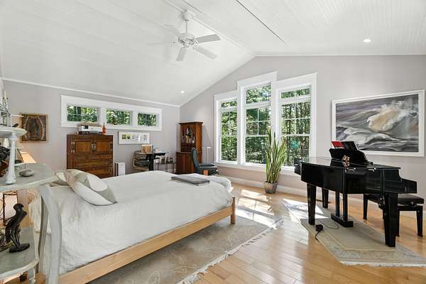 Middle Bay Tranquility with Refined Coastal Living Ideally located on highly desirable Mere Point in Brunswick, this exquisitely reimagined residence, fully rebuilt in 2013-2014, offers a polished expression of modern coastal living. Every detail was thoughtfully executed, resulting in a home that is both elegant and effortless. A welcoming open floor plan invites light throughout the main living spaces. The heart of the home is a generous living room anchored by a native stone fireplace with a wood stove insert, perfect for cozy evenings. Sliding Doors open to a sun-drenched private deck, ideal for morning coffee or sunset reflection. The chef's kitchen is a statement in both function and form, featuring a vaulted ceiling, custom cabinetry, Wolf gas range, and an expansive island designed for gathering and entertaining. A formal dining room with gleaming hardwood floors adds a touch of classic refinement. The laundry/mud room offers practical luxury with granite counters, tile flooring, and a deep utility sink. The floor plan offers a nice separation between the master bedroom and guest space with two guest bedrooms and a well-appointed full bath on the South side, ensuring comfort and privacy. The primary suite is a sanctuary, complete with walls of glass, private deck access, and a spacious walk-in dressing area. The en-suite bath showcases a custom-tiled shower, double vanity, and finely selected granite finishes. Outdoors, the landscape unfolds with mature plantings and a broad, private backyard. A quiet wooded path leads to 200 feet of tidal shoreline on Middle Bay, with long elevated water views of White Island and Harpswell. Potential for swimming, kayaking, and ideal for bird watching. This is a rare offering just minutes from Mere Point's public boat launch and a short drive to downtown Brunswick and Bowdoin College.