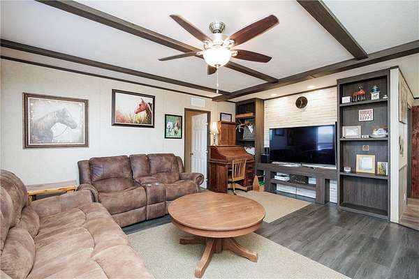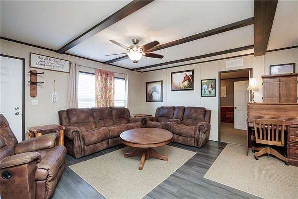 Seller is now willing to entertain FHA financing offers! Welcome to this charming oasis on 10+ secluded acres, tucked away in one of Orange Grove's most desirable areas! This newer, stylish home combines thoughtful design with modern comforts, making it the perfect retreat to relax and unwind. The inviting kitchen features an eat-in area and a spacious bar top, ideal for entertaining. The cozy living area is accented by built-in shelving around the entertainment center, creating a warm, inviting space for relaxation. The generously sized primary bedroom offers an ensuite bath with dual vanities, a luxurious soaker tub, a large walk-in closet, and convenient access to the laundry room-an effortless touch for everyday living. Enjoy your expansive 1,400-square-foot deck, overlooking a fully fenced yard, perfect for pets. The entire 10-acre property is also fully fenced, making it ideal for horses or fair animals, and includes two horse stalls with an attached shed. An additional bonus is the 50-amp RV hookup located near the house. Seller will also rent the property.