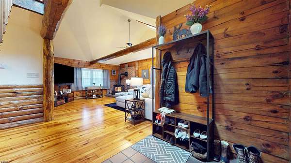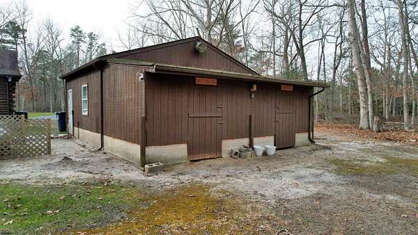 Rare Log Home for Horse Lovers, Hunters or Fishing Enthusiasts, over 12 private acres with two horse stalls and outside water. On the corner of Hay Road, a dirt road that leads you to the Mullica River for fishing, Hunting or Horseback riding. Cozy log home features newly refinished hardwood floors, new plush carpeting, freshly painted, new granite counter tops, The great room features custom timber beams and cathedral ceiling, Relaxing dining area at the rear of the home overlooking the backyard where you will see an abundance of wildlife, Large covered front porch perfect for a couple rocking chairs to enjoy the peace and pure serenity, rear deck adds an addition area to relax after a long day at work. Mechanics and woodworkers dream of a detached garage like the one you'll find at the end of the asphalt driveway