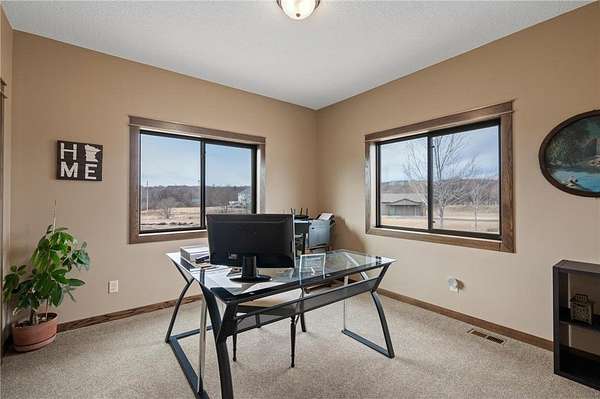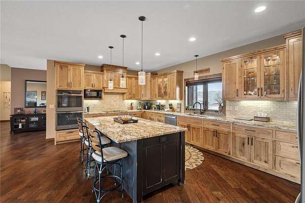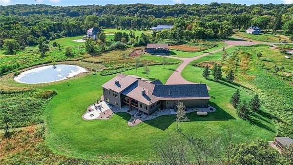 Discover unmatched luxury in this remarkable executive rambler, perfectly situated on almost 6 acres on the premier lot of this exclusive custom-built neighborhood. Nestled on a cul-de-sac and backing up to serene woods, this property boasts a private, spring-fed pond and community-owned Crow River access with 800+ feet of frontage. As soon as you walk in, you will be amazed by the endless custom features!