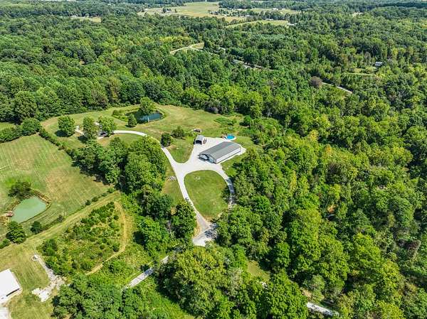 Build your dream home or embrace the Barndominium lifestyle on nearly 16 acres, featuring a 4,400 sq. ft. barn with 3 bedrooms, each with walk-in closets, 2 full bathrooms, a spacious kitchen, living room, and laundry area. The property also includes approximately 2,200 sq. ft. of garage space, perfect for hobbies or projects. Utilities are already in place for a future home, offering endless possibilities for your dream retreat or additional development. Smaller Garage being used as a rec/family room with Heat and AC. New HVAC, roof, and windows