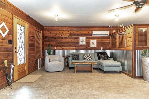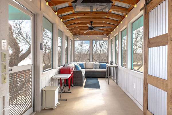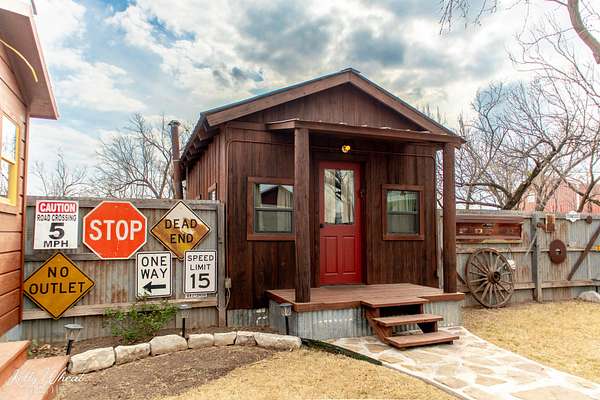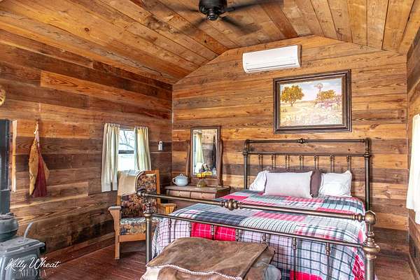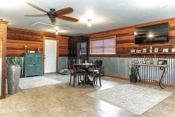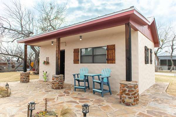This unique property is past the lake just outside the city limits and presently is a compound composed of the main living quarters of 1322 square feet and additional approx 1075' in living quarters, 4 more sleeping areas, 4.5 bathrooms in total, a lounge, 2 water wells, well house/workshop, and a huge 2,364' carport, maintenance building, and screened balcony. 3 silos, opened as outdoor living spaces circling a big fire pit. One of the cabins has thick concrete walls and doubles as a storm shelter/bunker with a large built in gun safe, tornado door and steel shutters. What a fun place for parties, events, or just enjoying with friends. All freshly painted and stained. Heat and AC provided by mini-splits. Very well constructed buildings and nicely done.Plenty of room for expansion and multiple opportunities for usage...reunions, events, Air B&B, addition of RV parking spaces, or commercial building as it fronts Knickerbocker Rd.!! There is an additional 5 acres directly adjoining that could also be purchased. Please contact listing agent for further information on that property. Appraiser drawing available upon request and scanned in documents to visualize the layout of the buildings on the property.