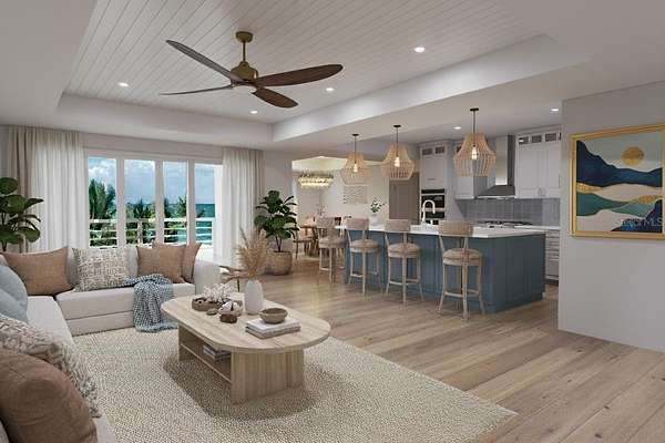 To bring the vision to life, custom 3D renderings have been created showcasing a sophisticated, elevated design featuring clean architectural lines, expansive windows, natural stone accents, and seamless indoor-outdoor living. The proposed concept highlights a dramatic two-story facade, covered lanai spaces, and lush tropical landscaping -- all thoughtfully designed to complement the tranquil lagoon setting.