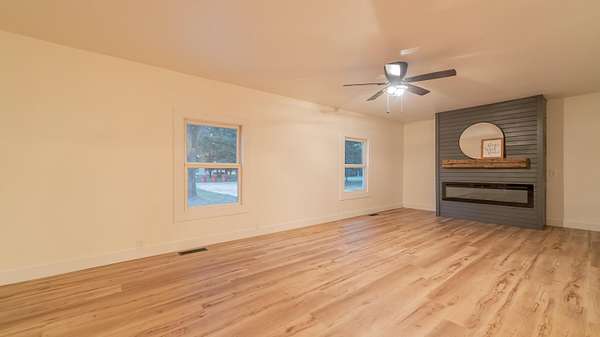 Introducing 8535 S 100 E North Judson, IN! Step inside this fully remodeled 3-bedroom, 2-bath home and feel right at home. The generous foyer sets the tone, turn left into a cozy living room with an electric fireplace or head straight into the dining room that flows into the beautifully updated kitchen. From the kitchen, you'll find access to the oversized 2-car garage as well as the partial basement, perfect for storage or future finishing. Off the back of the home, a mudroom leads into a bright laundry room, adding both function and convenience. The bedrooms and baths are tucked to the right of the foyer, offering a private retreat from the main living areas. Both bathrooms have been stylishly updated, and every detail throughout the 1,730 sq ft interior has been refreshed with today's finishes. Outside, enjoy 2+ acres of peaceful country living from your brand-new back deck or the large front patio. Whether you're relaxing, entertaining, or simply taking in the quiet, these spaces were made for it. If you've been searching for a move-in ready home with modern updates, land to spread out, and a layout that truly works, Welcome to your new home!
