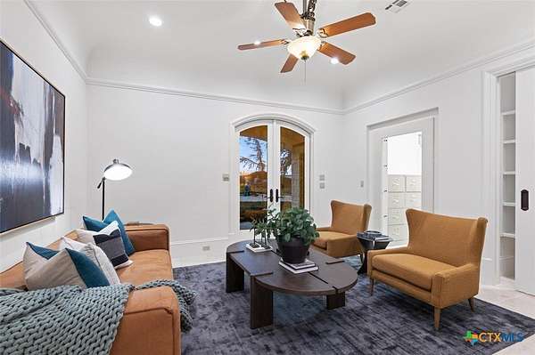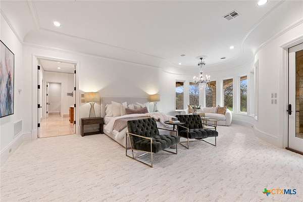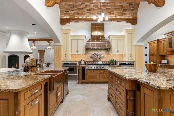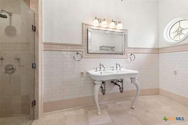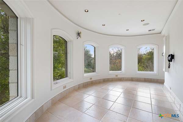 AUCTION BIDDING OPEN: Bidding ends February 28th. Previously Listed 5.95M. Current High Bid 2.75M. Showings Saturday 11-1 pm, and Daily By Appointment An extraordinary legacy opportunity awaits at Oxbow Overlook, a magnificent architectural masterpiece perched high above Salado Creek on thirteen pristine acres of meticulously manicured Texas landscape. This incomparable estate captures the essence of refined Hill Country living with its dramatic wrought iron entry gate, stunning courtyard, and mature live oaks creating a majestic approach. A striking 24-foot entry wall of iron and glass reveals a grand foyer crowned by a 31-foot copper dome ceiling hovering above a sweeping quarter-sawn oak staircase with copper accents. Seven fireplaces, including an outdoor feature, complement the native limestone construction throughout. Creek-side walls, terraces, and outdoor living spaces conform to the bluff's natural curve, offering spectacular vistas across the property and showcasing exceptional craftsmanship with thoughtful conveniences at every turn..