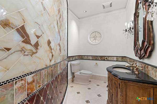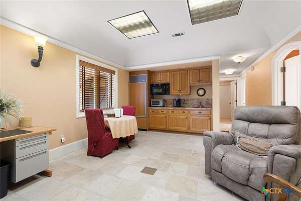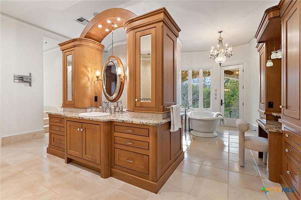 - Attic, Beamed Ceilings, Bookcases, Built In Features, Chandelier, Coffered Ceilings, Crown Molding, Dining Area, Double Vanity, Eat In Kitchen, Elevator, Entrance Foyer, Game Room, Garden Tub Roman Tub, His And Hers Closets, Home Office, In Law Floorplan, Multiple Living Areas, Primary Downstairs, Separate Formal Dining Room, Wet Bar