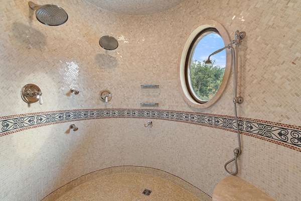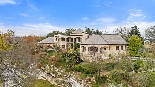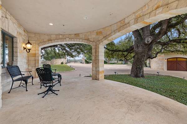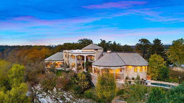 An extraordinary legacy opportunity awaits at Oxbow Overlook, a magnificent architectural masterpiece perched high above Salado Creek on thirteen pristine acres of meticulously manicured Texas landscape. This incomparable estate captures the essence of refined Hill Country living with its dramatic wrought iron entry gate, stunning courtyard, and mature live oaks creating a majestic approach. A striking 24-foot entry wall of iron and glass reveals a grand foyer crowned by a 31-foot copper dome ceiling hovering above a sweeping quarter-sawn oak staircase with copper accents. Seven fireplaces, including an outdoor feature, complement the native limestone construction throughout. Creek-side walls, terraces, and outdoor living spaces conform to the bluff's natural curve, offering spectacular vistas across the property and showcasing exceptional craftsmanship with thoughtful conveniences at every turn.
