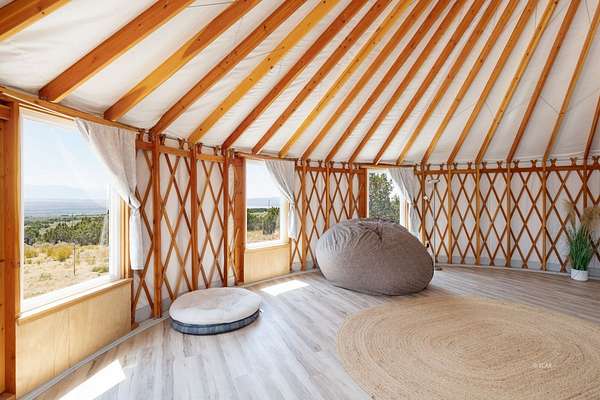 Welcome to your own private sanctuary/compound. Nestled on nearly 88 total acres, this property is a true sanctuary. Enjoy breathtaking views from every angle of the main residence, set on 43+ acres of natural beauty - or sneak away to the serene yurt on the adjoining 44+ acres for the ultimate private retreat. The land is fully fenced and thoughtfully designed with separate driveways to the house and yurt, allowing for both privacy and versatility. A peaceful walking path connects the two, inviting daily moments of stillness, stargazing strolls, or inspired connection between spaces. Whether you're seeking a full-time escape, a multi-home compound, or a space to host and heal, this one-of-a-kind setting offers the space to dream and the peace to stay grounded. ***THE 30 FOOT, SOLAR POWERED YURT PROPERTY IS FULLY FENCED WITH A SEPTIC! Also, enjoy the 800 square foot Private Gym & Sauna, the expansive 1,040 square foot deck and pergola area, and the 1,296 square foot shop. Owner is open to reasonable offer.