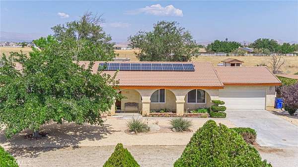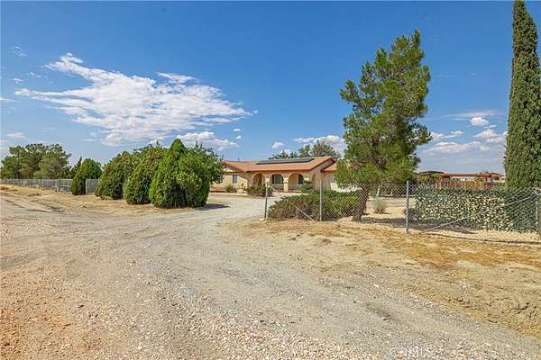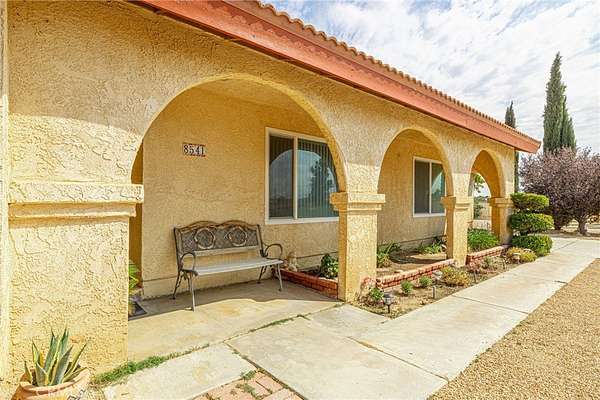 Welcome to your next dream country home at 8541 West Avenue D in Antelope Acres! This stunning single-level Spanish-style ranch house is nestled on a sprawling 2.18-acre lot, offering both privacy and ample space for all your hobbies and farming passions. With 2,239 square feet of living space, this home features 3 bedrooms and 2 bathrooms, providing a comfortable and inviting atmosphere. Step inside to find a spacious living room with formal dining area perfect for entertaining guests. The cozy family room, complete with a charming brick fireplace and ceiling fan is ideal for relaxing evenings. The kitchen has tile counters and has seating for 3 bar stools and is equipped with a propane stove, dishwasher, and microwave oven included, making meal prep a breeze. A dedicated laundry room comes with a washer and dryer included for your convenience. The primary bedroom suite also has a ceiling fan and boasts its own private bathroom with a walk in shower stall, ensuring a serene retreat with a 367SF attached patio room with a sliding glass door perfect for relaxing indoors and unwinding after a long day. Your guests will enjoy 2 spacious bedrooms also with ceiling fans and a large hallway lined closet and full hallway bathroom with bathtub and tiled countertop and sink. You'll enjoy the convenience of both tile and low-pile wall-to-wall carpeting throughout the home. Additionally, the freezer and primary bedroom set is included and other furniture is negotiable. Includes a solar energy system to lower your monthly energy costs with central air conditioning and forced air propane gas furnace, Outdoor enthusiasts will appreciate the vast lot size of 92,192 square feet, offering horse corral and cattle raising opportunities. Includes a chicken coop, storage sheds and a 2 RV covered parking barn, a separate rear carport and a 2-car attached garage and concrete driveway for extra parking. The septic tank was recently inspected and certified and pumped and ready for the new ocupant. This home is truly a unique find. Don't miss out on this incredible opportunity - hurry before it's gone!