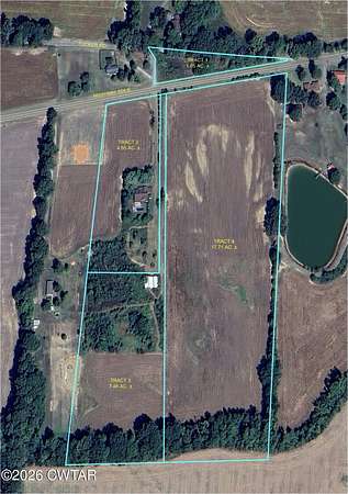 Absolute Auction! Thursday, May 14, 2026 at 5:30PM on-site at home. 4006 sq ft House and 30.7 acres +/-. House is 4 bedrooms and 3 bathrooms with a in ground pool. House and acreage will be offered in 4 tracts. Tract 1.05 acres +/-. Tract 2 House and 4.55 acres +/-. Tract 3 7.46 acres +/- and Barn. Tract 4 17.71 acres +/-. We will be selling individually and combinations of tracts. Call Leigh Ann today for information or showing- or.