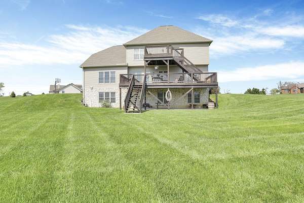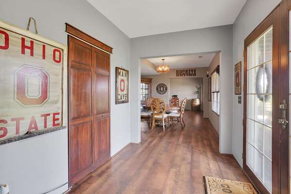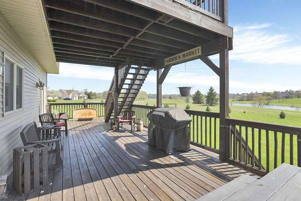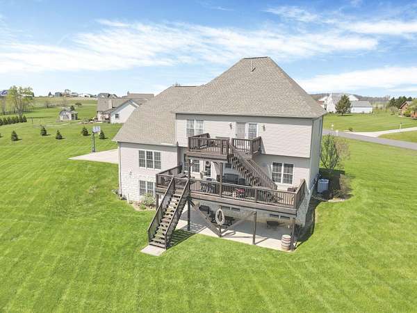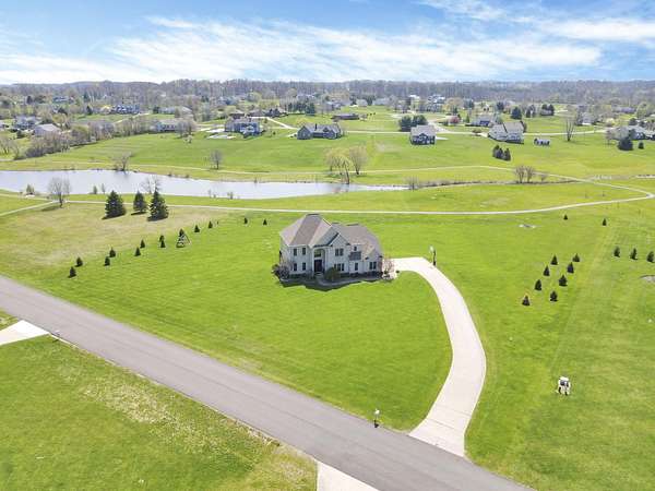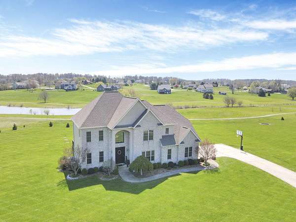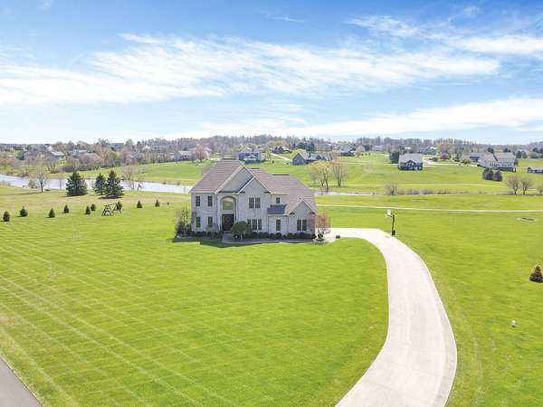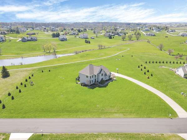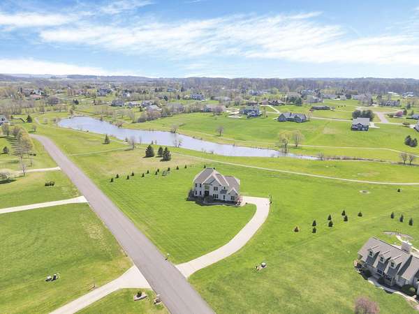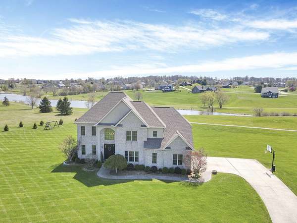 Welcome to this exceptional home in the highly sought-after Heather Lake Community, located within the desirable Bloom-Carroll School District. Situated on nearly 2 acres, this property offers peaceful views of the fully stocked community pond and walking path, along with the added privacy of a reserved lot right next door and cul-de-sac location. Step inside the brand new custom built 8 ft front door to a grand two-story foyer that sets the tone for this beautifully appointed home. Offering 4 spacious bedrooms, 3 full baths and 2 half baths, there is room for everyone. The thoughtfully designed floor plan includes a first-floor den/office, formal living and dining room and a warm, inviting family room featuring a dramatic 2 story stone fireplace. The stunning kitchen is a true centerpiece for gathering, complete with newer appliances, double oven, a large island as well as an eating space. All open to the cozy family room. Upstairs, enjoy the convenience of a second-floor laundry along with a luxurious primary suite and an additional en suite bedroom. 4 bedrooms on the 2nd floor and 3 full baths. The full finished walk-out basement expands your living space and includes a half bath, recreational room and plenty of storage--ideal for privacy or hosting guests. Step out and relax on the private patio overlooking the water. Additional highlights include two furnaces and two air conditioning units for year-round comfort, and gorgeous woodwork and trim throughout that add timeless character and charm. So many updates! Please refer to the Home Improvement document attached.